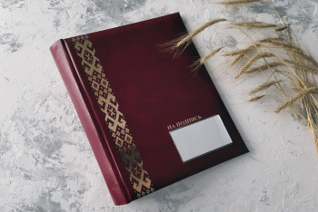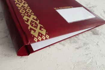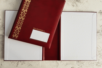 Папка ― НА ПОДПИСЬ, с карманом, бордового цвета,тиснение в золоте, имеет широкий мягкий корешок 80 мм. Внутреннее исполнение (оклейка белой бумагой).