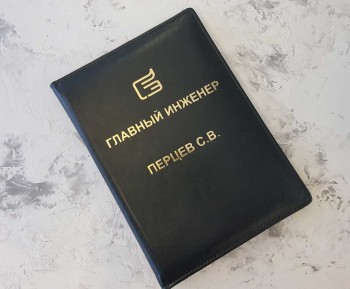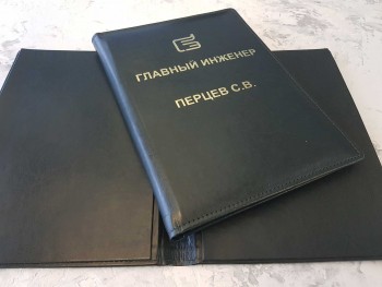 Папка на подпись ГЛАВНЫЙ ИНЖЕНЕР зеленого цвета, формата А4, тиснение в золоте (возможно тиснение серебром, а также без цвета), имеет широкий корешок 40 мм. Возможно изготовление корешков разной ширины с шагом в один сантиметр — 2, 3, 4, 5, 6, 7, 8, 9, 10 см. (При заказе ширины корешка свыше 10см подробности уточняйте у менеджеров компании).
