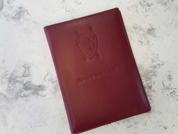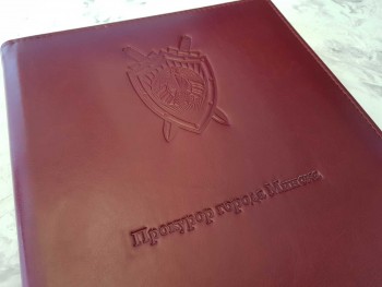 Папка на подпись ПРОКУРОР ГОРОДА бордового цвета, формата А4, тиснение без цвета (возможно тиснение серебром, а также золотом ), имеет широкий корешок 40 мм. Возможно изготовление корешков разной ширины с шагом в один сантиметр — 2, 3, 4, 5, 6, 7, 8, 9, 10 см. (При заказе ширины корешка свыше 10см подробности уточняйте у менеджеров компании).