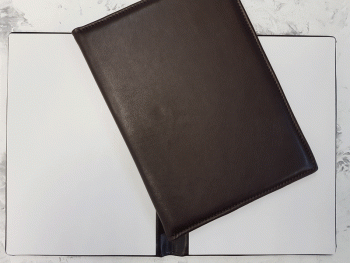Папка коричневого цвета, возможно тиснение серебром, золотом, а также без цвета, имеет широкий корешок 40 мм. Возможно изготовление корешков разной ширины с шагом в один сантиметр — 2, 3, 4, 5, 6, 7, 8, 9, 10 см. (При заказе ширины корешка свыше 10см подробности уточняйте у менеджеров компании). Выполнена с внешней стороны из искусственной кожи, внутреннее исполнение - мелованный картон белого цвета.
