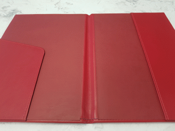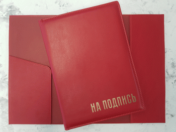 Папка НА ПОДПИСЬ красного цвета, с карманами внутри, тиснение в золоте (возможно тиснение серебром, а также без цвета), имеет широкий корешок 40 мм. Возможно изготовление корешков разной ширины с шагом в один сантиметр — 2, 3, 4, 5, 6, 7, 8, 9, 10 см. (При заказе ширины корешка свыше 10см подробности уточняйте у менеджеров компании). Выполнена с внешней стороны из искусственной кожи, внутреннее исполнение - дизайнерский картон красного цвета.