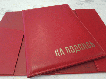 Обращаем ваше внимание, что Папка на подпись из кожзама может быть выполнена в любом из следующих цветов: темно-коричневый, черный, белый, красный, бордовый, зеленый, синий.