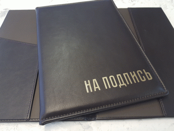 Обращаем ваше внимание, что Папка на подпись из кожзама может быть выполнена в любом из следующих цветов: темно-коричневый, черный, белый, красный, бордовый, зеленый, синий.