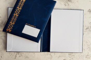 Обращаем ваше внимание, что Папка на подпись из бумвинила может быть выполнена в любом из следующих цветов: синий, бордовый, зеленый, красный, коричневый, белый, черный, золотистый, синий мрамор, бордовый мрамор.