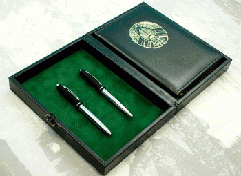 • набор из двух металлических ручек бизнес-серии: шариковой автоматической ручки с объемным стержнем и ручки-роллера.