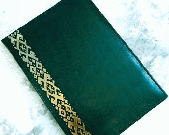 Папка адресная ЗЕЛЕНОГО цвета. Выполнена из качественной искусственной кожи. Орнамент оттиснен золотом. Внутри оклейка дизайнерским материалом.